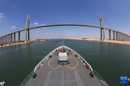 中國(guó)海軍第26批護(hù)航編隊(duì)航行通過(guò)蘇伊士運(yùn)河(2017年9月2日攝)。新華社發(fā)(林健攝)