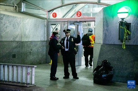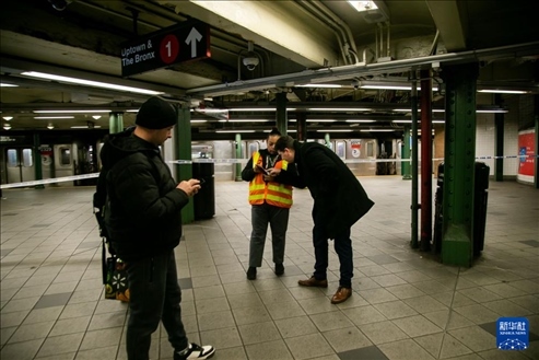 1月4日,在美國(guó)紐約,工作人員在地鐵站臺(tái)為乘客提供幫助。新華社發(fā)(郭克攝)