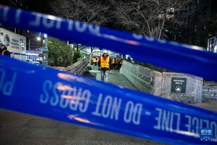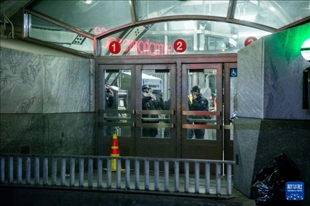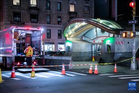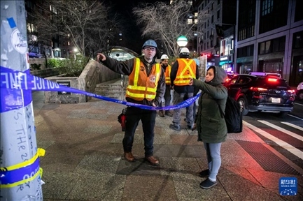 1月4日,在美國(guó)紐約,工作人員在列車脫軌事故現(xiàn)場(chǎng)外工作。新華社發(fā)(郭克攝)