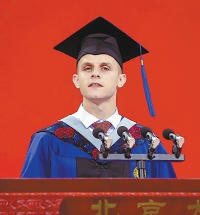 安德里亞在北京大學畢業(yè)典禮上作為學生代表發(fā)言。受訪者供圖
