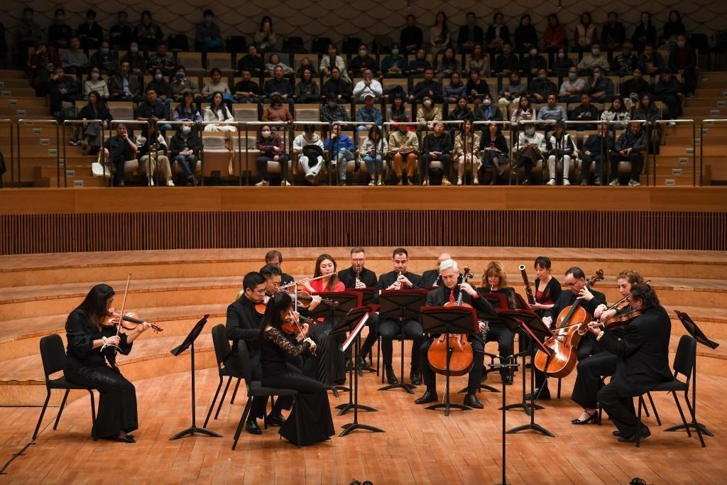 ?這是2023年11月16日拍攝的音樂會現(xiàn)場。當(dāng)日,“費城之約”——費城交響樂團與蘇州交響樂團室內(nèi)樂音樂會在江蘇蘇州舉行。新華社記者 李博 攝
