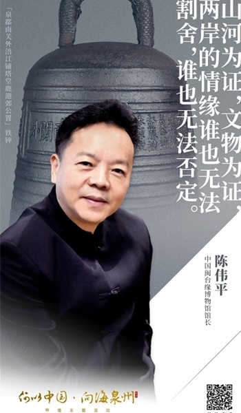 1月28日晚,由中央網(wǎng)信辦、國(guó)家文物局、人民日?qǐng)?bào)社、福建省委網(wǎng)信委指導(dǎo),中央網(wǎng)信辦網(wǎng)絡(luò)傳播局、國(guó)家文物局相關(guān)司局、福建省委網(wǎng)信辦、福建省文物局以及人民網(wǎng)等部門(mén)聯(lián)合主辦的“何以中國(guó)·向海泉州”網(wǎng)絡(luò)主題活動(dòng)在泉州舉行?;顒?dòng)現(xiàn)場(chǎng),作為講述嘉賓之一,中國(guó)閩臺(tái)緣博物館館長(zhǎng)陳偉平分享了自己見(jiàn)證的閩臺(tái)緣、兩岸情。