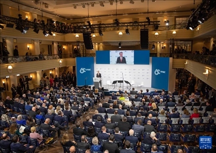 2月16日,在德國(guó)慕尼黑,慕安會(huì)主席克里斯托夫·霍伊斯根在第60屆慕尼黑安全會(huì)議(慕安會(huì))開幕式上致辭。新華社記者張帆攝