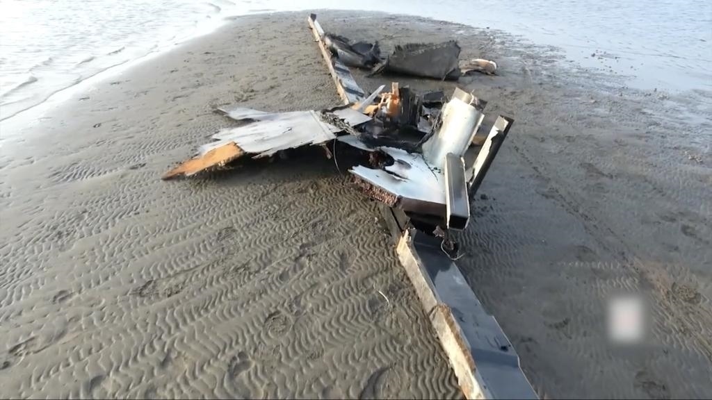 這張2月20日的視頻截圖顯示的是,疑似被胡塞武裝擊落的美國MQ-9無人機殘骸墜落到也門紅海城市荷臺達(dá)的一處海灘上。新華社發(fā)