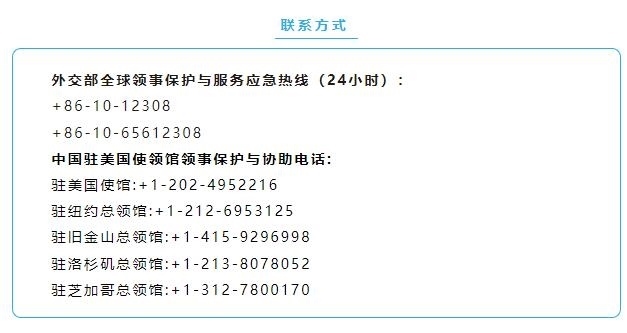 外交部及駐美使領(lǐng)館已就此向美方提出嚴(yán)正交涉。同時,提醒擬赴美人員意識到入境美國時可能遇到各種意外情況。如需尋求幫助,請及時聯(lián)系中國駐美使領(lǐng)館。