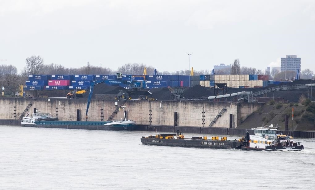 貨輪排隊???,火車鳴笛駛?cè)胴涍\場站,卡車搭載著印有“渝新歐”“義新歐”“西安港”等字樣的集裝箱往來奔馳……這座萊茵河畔的港口,一派繁忙景象。