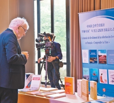 5月3日,中國(guó)社會(huì)科學(xué)出版社“理解中國(guó)”叢書(shū)法文版圖書(shū)揭幕儀式在法國(guó)巴黎舉行。圖為現(xiàn)場(chǎng)嘉賓在展位前駐足了解相關(guān)圖書(shū)。本報(bào)記者 楊 一攝
