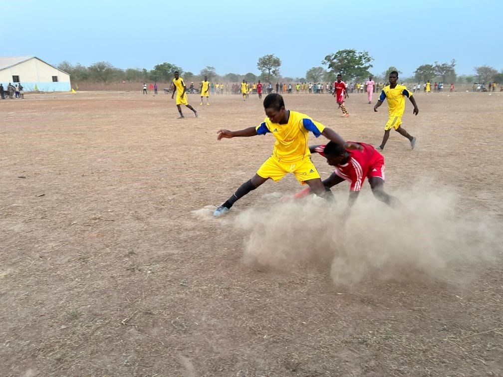 在貝寧帕拉庫市,中國援貝寧棉花技術項目駐地內(nèi),首屆非洲“村超”足球賽近期鳴鑼開賽。來自當?shù)囟鄠€村莊的村民等組成12支隊伍參賽,比賽采用聯(lián)賽制,周末舉行,將持續(xù)到5月底。