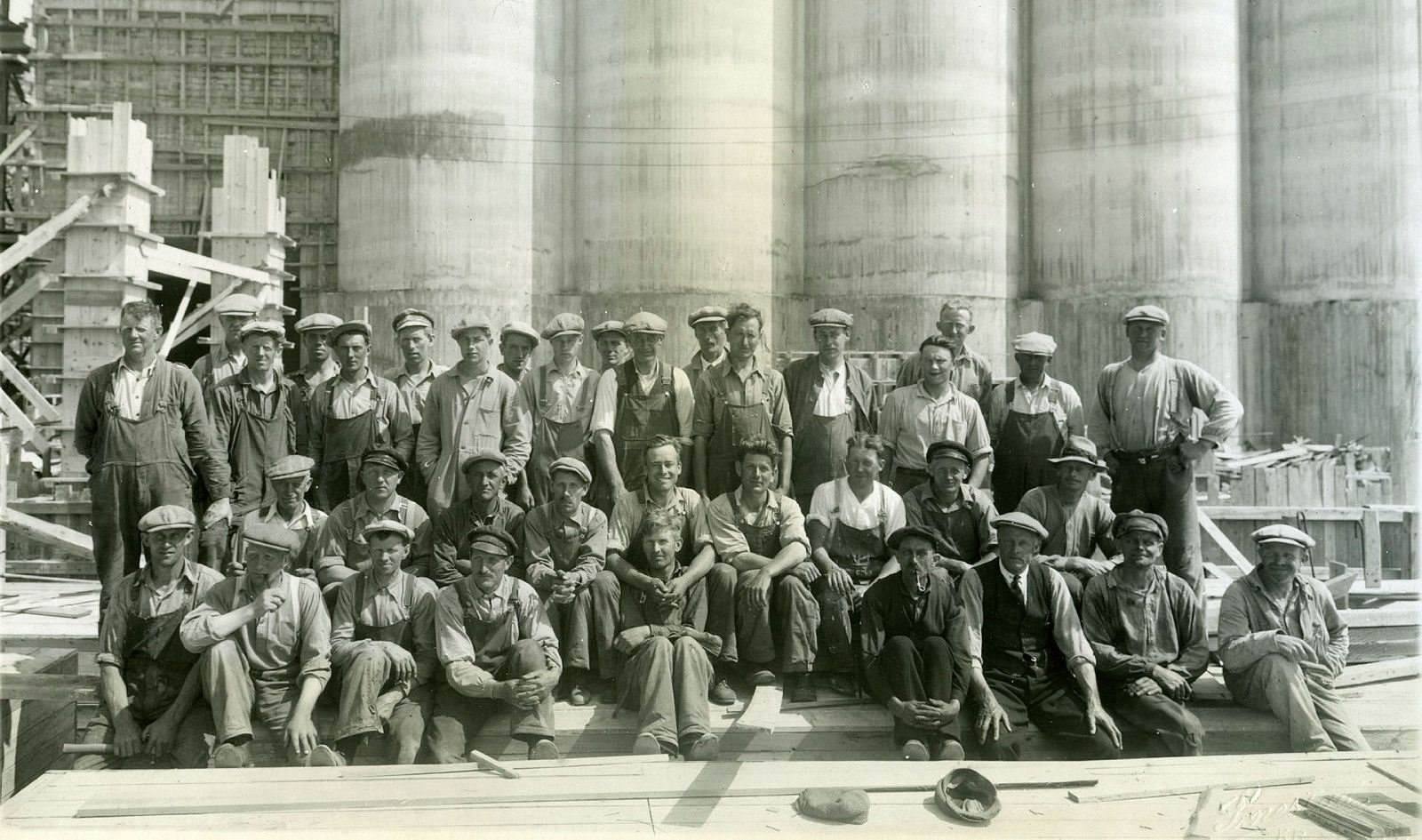 1935 年谷倉建筑前,工人們合影。