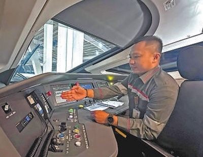 經(jīng)過(guò)幾個(gè)月的在崗培訓(xùn),阿古斯對(duì)駕駛動(dòng)車已是駕輕就熟。“網(wǎng)壓正?!薄斑^(guò)分相注意”“斷電好了”“合電好了”“目標(biāo)速度350,恒速328設(shè)定好了”……駕駛中,他嫻熟地應(yīng)對(duì)不同路況。5時(shí)40分,阿古斯駕駛列車安全停靠在終點(diǎn)站萬(wàn)隆德卡魯爾站。張躍對(duì)他的操作進(jìn)行總結(jié)并給出改進(jìn)建議,阿古斯逐條認(rèn)真記錄下來(lái)。張躍告訴記者,阿古斯認(rèn)真好學(xué),“希望他能成為印尼第一批高鐵動(dòng)車組司機(jī)中的業(yè)務(wù)能手和榜樣,帶動(dòng)更多印尼學(xué)員成為優(yōu)秀的高鐵動(dòng)車組司機(jī),讓更多印尼民眾享受到安全、快捷、現(xiàn)代化的高鐵出行方式”。