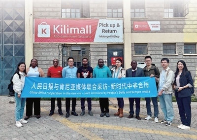 7月25日,在肯尼亞馬查科斯郡,中肯媒體記者走進電商平臺Kilimall非洲海外倉采訪倉儲物流及運營情況。本報記者 高 石攝