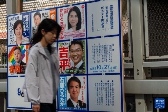 10月15日,行人走過(guò)日本東京的一處眾議院議員選舉公示板。新華社記者 張笑宇 攝