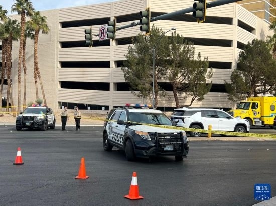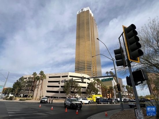 1月1日,在美國(guó)內(nèi)華達(dá)州拉斯維加斯,警方封鎖發(fā)生電動(dòng)汽車爆炸事件的特朗普酒店門前區(qū)域。新華社記者 譚晶晶 攝