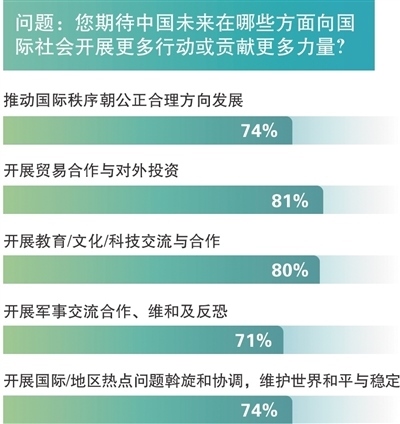 中國已同183個國家建立外交關系,成為150多個國家和地區(qū)的主要貿易伙伴。調查發(fā)現,對華友好是各國民眾普遍愿望。超過八成國外民眾認為本國與中國的關系是友好的、正常的、戰(zhàn)略合作的,62%希望本國與中國關系變得更好。調查數據顯示,年輕群體對中國有更大興趣、更好印象、更高熱情、更強認同。
