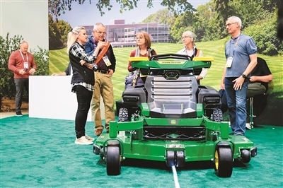 圖為在美國拉斯維加斯消費電子展上,人們觀看一款農(nóng)用車輛。
