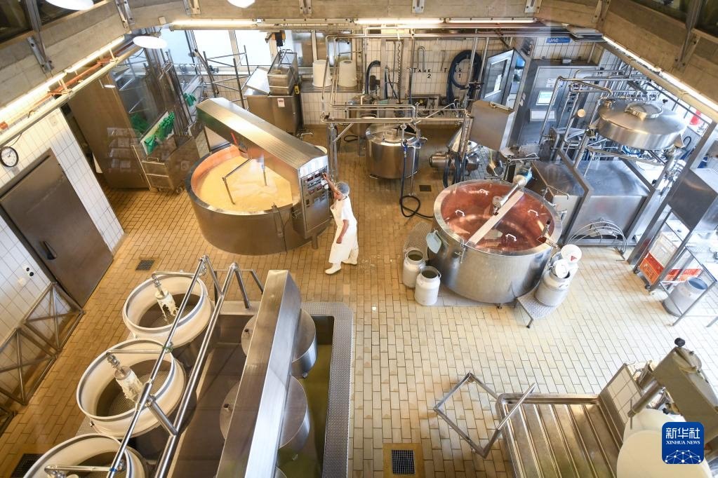 4月12日,在瑞士埃默河谷阿福爾特恩,工作人員在奶酪廠工作。