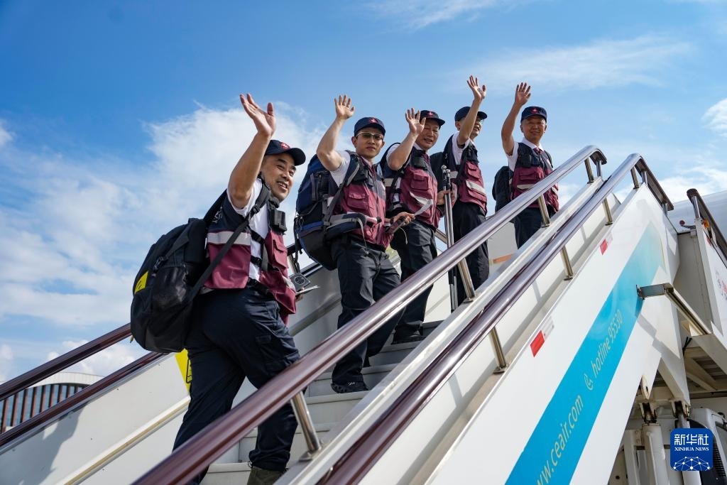 4月19日,12名從北京出發(fā)的隊(duì)員從北京首都機(jī)場(chǎng)離京。新華社記者 張玉薇 攝