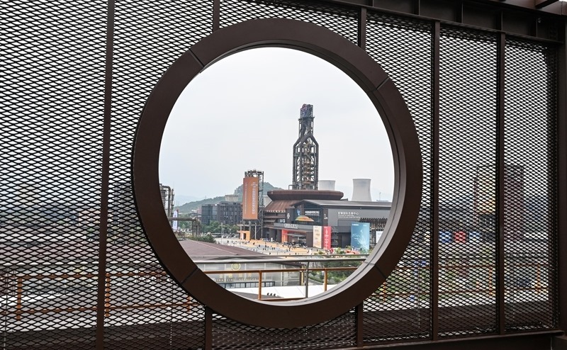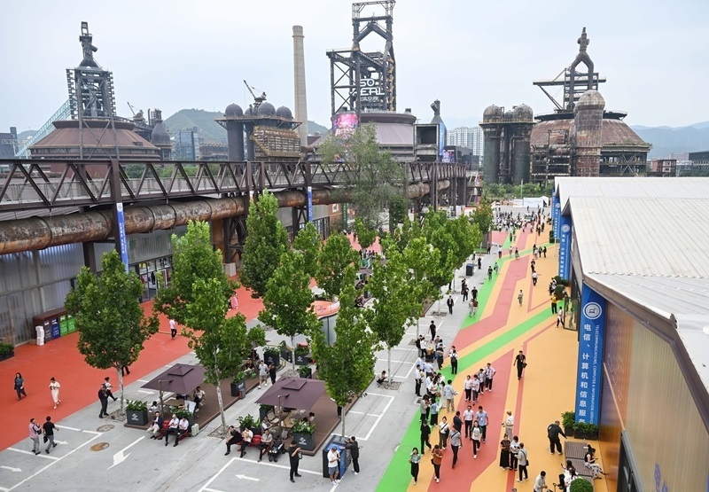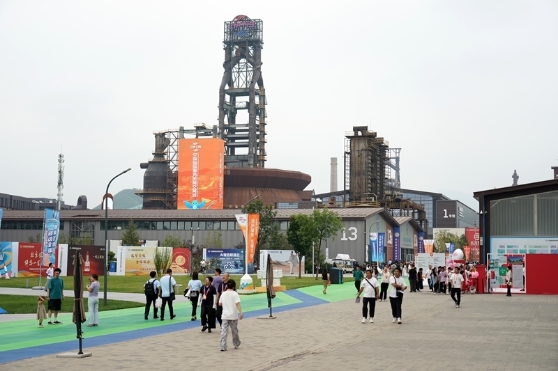 9月10日,在首鋼園四高爐,參會(huì)人員進(jìn)出會(huì)議區(qū)。