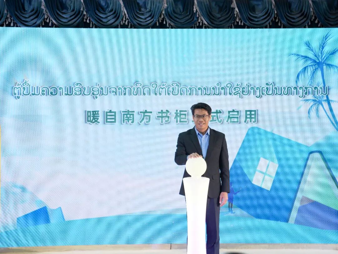 坎普·皮沙卡說,減貧是人類共同的挑戰(zhàn)。老中在減貧發(fā)展領(lǐng)域攜手同行、深化合作,從完善民生基礎(chǔ)設(shè)施到培育扶持特色產(chǎn)業(yè),從提升鄉(xiāng)村發(fā)展能力到改善民生福祉,一系列務(wù)實合作舉措落地見效,讓兩國人民共享發(fā)展成果?!稊[脫貧困》一書凝聚著中國共產(chǎn)黨和國家寶貴的發(fā)展智慧和實踐經(jīng)驗,為老撾探索符合本國國情的減貧道路提供了重要借鑒。今天啟用的“暖自南方”書柜,是老中文化交流的暖心之舉,是文化賦能減貧的生動實踐。希望雙方打造更多像“暖自南方”書柜這樣的文化交流品牌,依托書柜開展形式多樣的讀書活動,增進(jìn)兩國人民相互了解,推動文明交流互鑒。