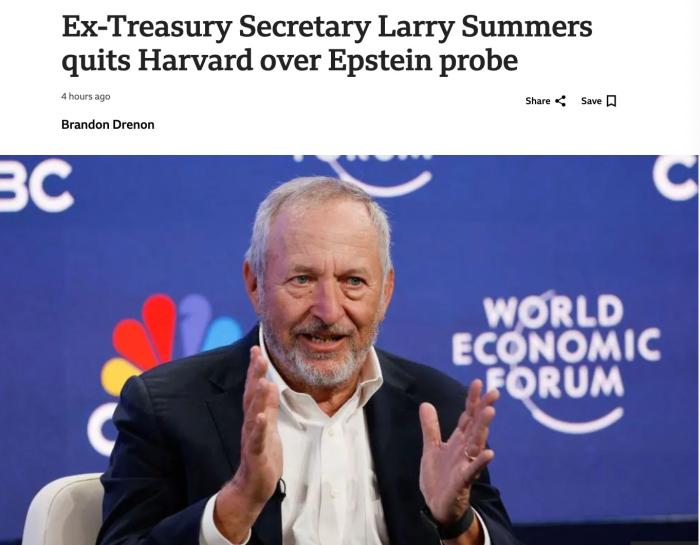 據(jù)報道,哈佛大學在25日的一份聲明中表示,薩默斯的離職“與哈佛大學正在對愛潑斯坦案相關文件進行的審查有關”。