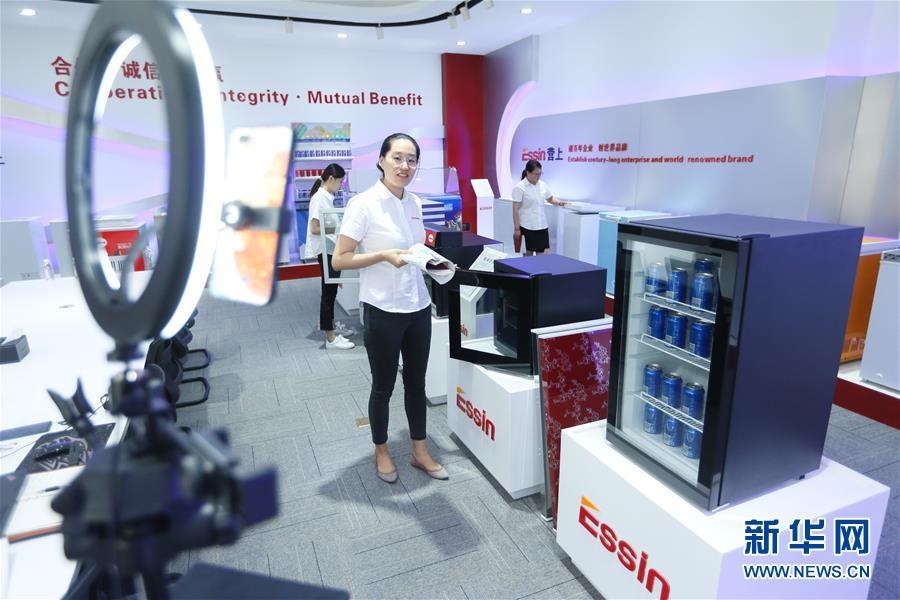 6月15日,在青島營(yíng)上電器有限公司,營(yíng)銷(xiāo)人員通過(guò)廣交會(huì)直播平臺(tái)推介出口到海外市場(chǎng)的冰箱。當(dāng)日,第127屆廣交會(huì)拉開(kāi)帷幕。這是我國(guó)首次將廣交會(huì)整體性“搬上云端”。本屆廣交會(huì)會(huì)期10天,保持24小時(shí)不間斷,按16大類(lèi)商品設(shè)置50個(gè)展區(qū),180萬(wàn)件展品同期上線展示。新華社發(fā)(梁孝鵬攝)