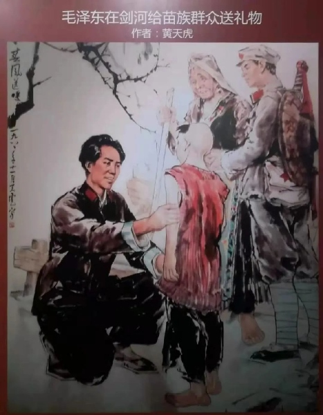 “當我等行經(jīng)劍河縣附近之某村落時,見路邊有一老婦與一童子,身穿單衣,倒于路邊,氣息尚存……正詢問間,赤軍領(lǐng)袖毛澤東至,告以老婦所言。當時毛即時從身上脫下毛線衣一件及行李中取出被單一條,授予老婦,并命人給以白米一斗。老婦則連連道謝含笑而去?!?/p>
