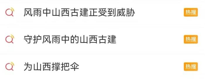 近日,“風(fēng)雨中山西古建正受到威脅”“守護風(fēng)雨中的山西古建”“為山西撐把傘”等話題登上微博熱搜。