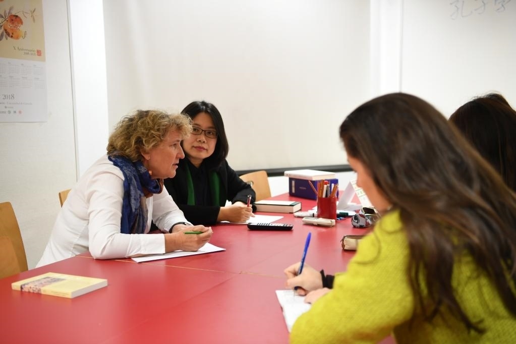 2018年11月13日,在西班牙南部小城格拉納達(dá),雷林科教授(左一)在格拉納達(dá)大學(xué)孔子學(xué)院參加教學(xué)工作會(huì)議。