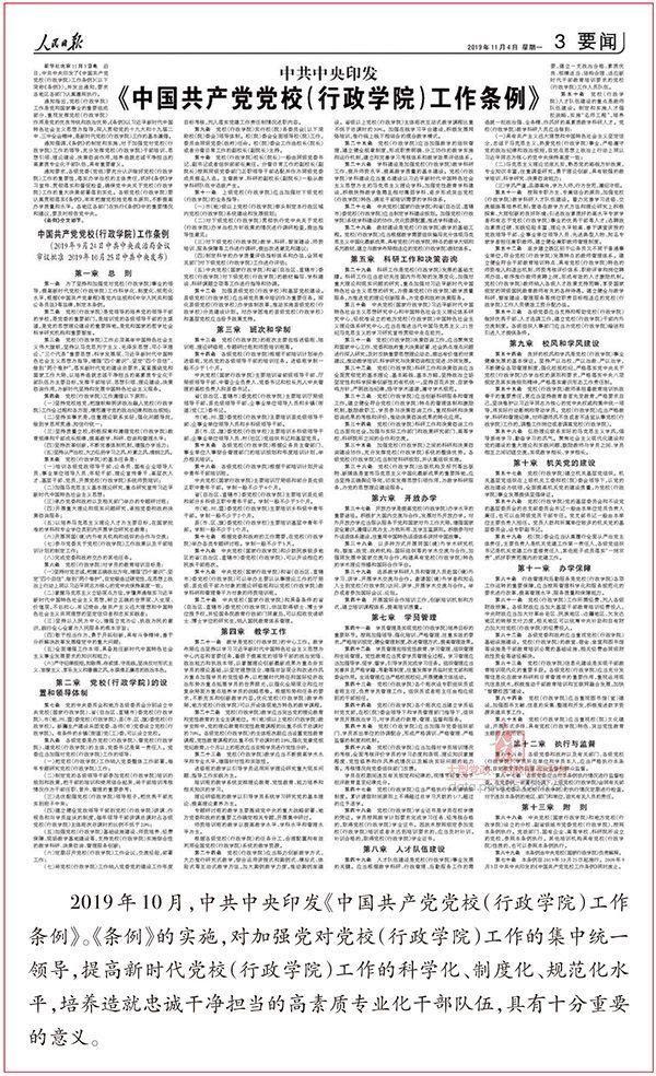 ——“從嚴(yán)治校是黨校辦學(xué)的基本方針,是全面從嚴(yán)治黨要求在黨校工作中的具體體現(xiàn)?!辈徽L(fēng)“凈化器”、黨性鍛煉“大熔爐”、全面從嚴(yán)治黨“風(fēng)向標(biāo)”……習(xí)近平總書記用三個精妙比喻對這些年來黨校從嚴(yán)治校的成效予以充分肯定,同時強(qiáng)調(diào)“從嚴(yán)治校永遠(yuǎn)在路上”??倳浺蟾骷夵h校“把從嚴(yán)治校的要求貫徹到黨校工作全過程各方面,重點(diǎn)抓好教師和學(xué)員兩個主體”。就教師來說,要加強(qiáng)黨校光榮傳統(tǒng)和優(yōu)良作風(fēng)教育,加強(qiáng)政治紀(jì)律和政治規(guī)矩教育,引導(dǎo)黨校教師潛心治學(xué)、虔誠問道、悉心育人;就學(xué)員來說,各級黨校要敢抓敢管、嚴(yán)抓嚴(yán)管,讓學(xué)員一進(jìn)黨校就感受到學(xué)習(xí)之風(fēng)、樸素之風(fēng)、清朗之風(fēng)。