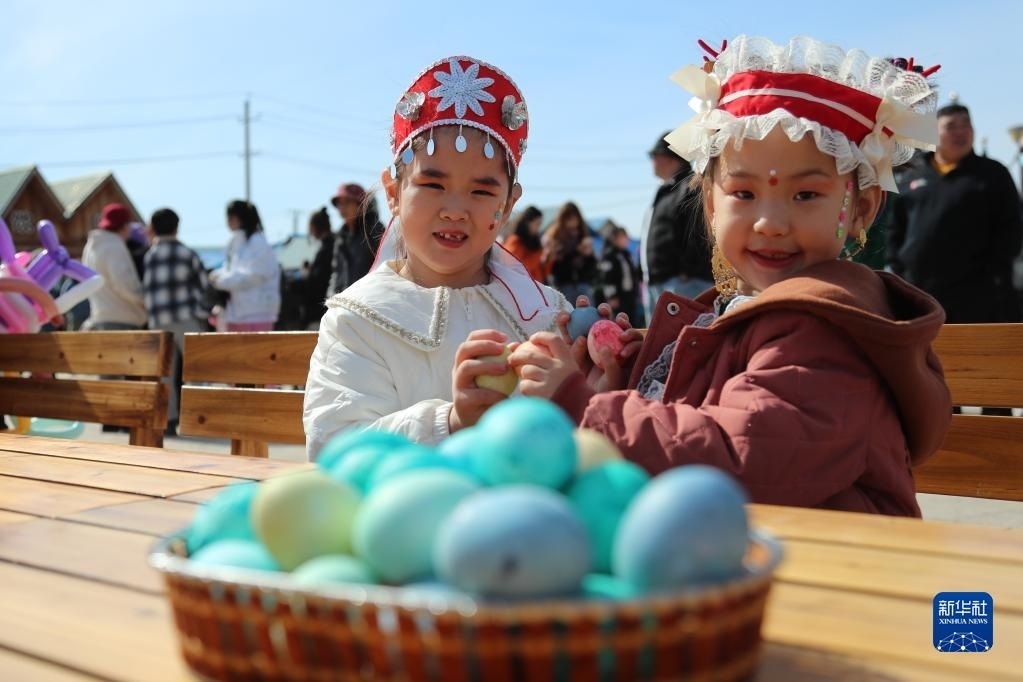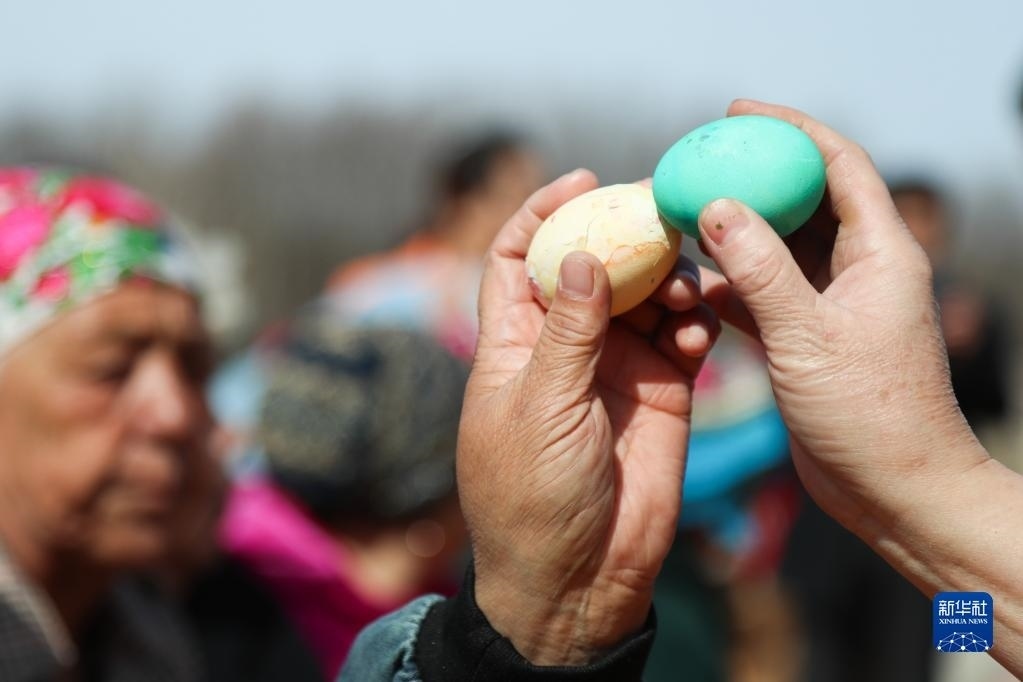 當(dāng)日,內(nèi)蒙古呼倫貝爾市額爾古納市恩和俄羅斯族民族鄉(xiāng)的俄羅斯族群眾穿著鮮艷的民族服飾,載歌載舞,歡度巴斯克節(jié)。已被列入國(guó)家級(jí)非物質(zhì)文化遺產(chǎn)名錄的巴斯克節(jié)是俄羅斯族一年中最隆重的節(jié)日,在為期一周的節(jié)日里,當(dāng)?shù)厝罕娖穱L美食、互相撞彩蛋、參加拔河、搶棍等活動(dòng)。