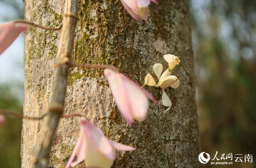 蘭花螳螂停留在樹(shù)干上。馬麗芳攝
