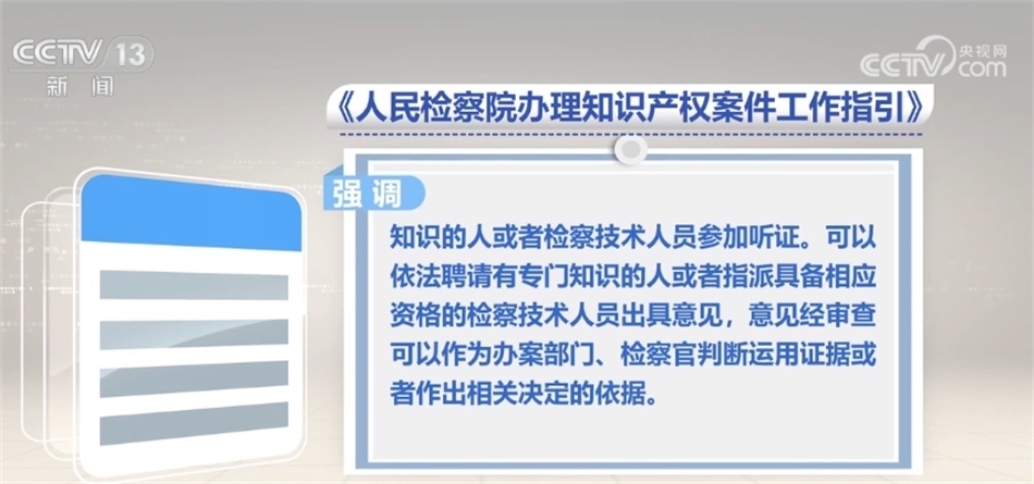 同時,《工作指引》強調(diào),遇有涉及國家秘密、商業(yè)秘密、個人隱私或者其他需要保密的情形,應(yīng)當依利害關(guān)系人書面申請,采取組織訴訟參與人簽署保密承諾書、對秘密信息進行技術(shù)處理等必要的保密措施。針對知識產(chǎn)權(quán)案件技術(shù)性強的特點,根據(jù)案件需要,可以邀請有專門知識的人或者檢察技術(shù)人員參加聽證,可以依法聘請有專門知識的人或者指派具備相應(yīng)資格的檢察技術(shù)人員出具意見。意見經(jīng)審查可以作為辦案部門、檢察官判斷運用證據(jù)或者作出相關(guān)決定的依據(jù)。