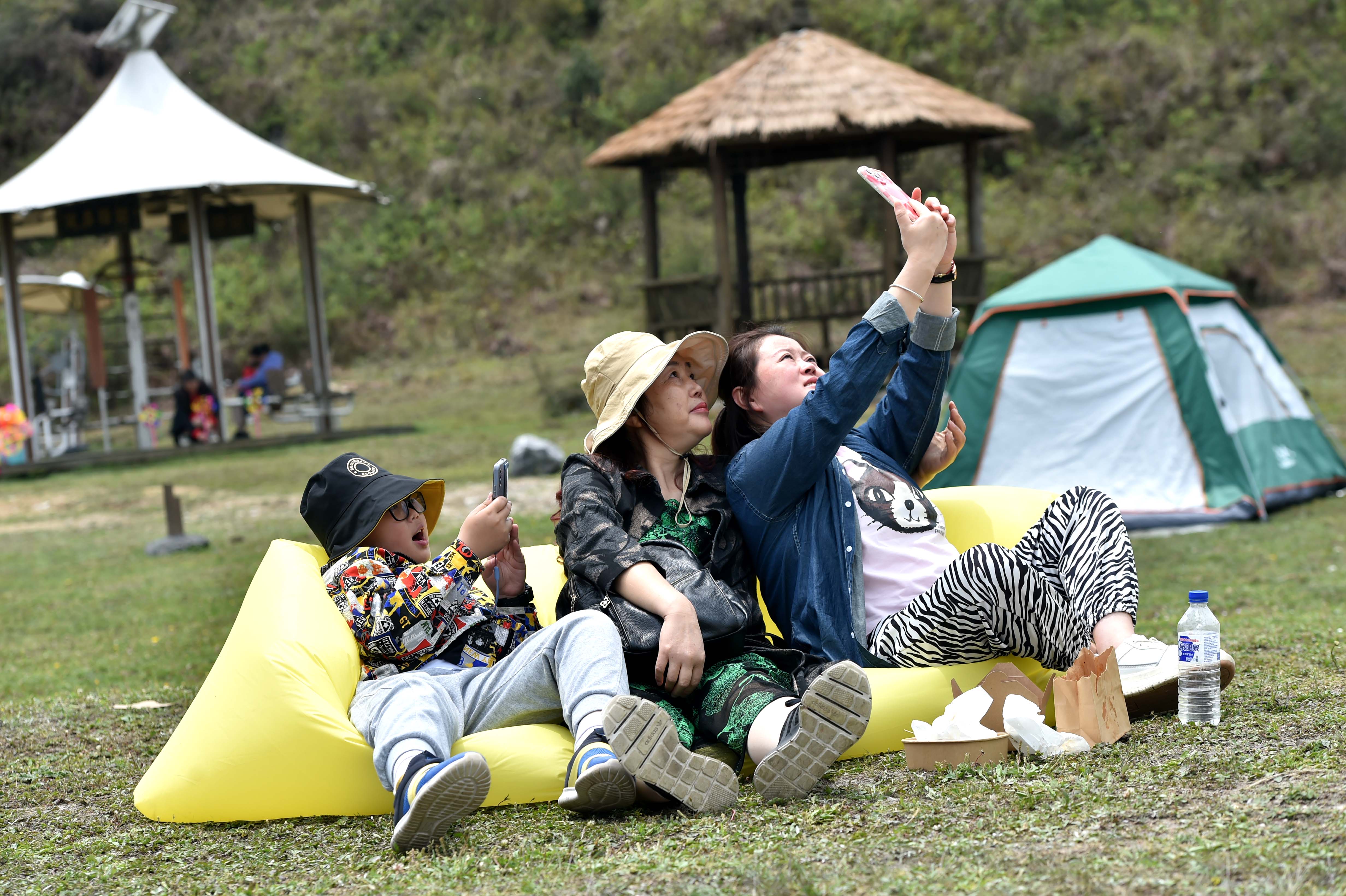 2023年4月30日,游客在貴州省畢節(jié)百里杜鵑方家坪景區(qū)自拍留影。 (寧堅(jiān) 柏祥意)