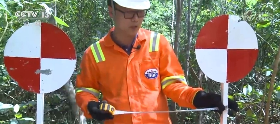巴西米拉多爾項(xiàng)目負(fù)責(zé)人 孫?。?/strong>這是為了測(cè)量我們清線的寬度,因?yàn)榘凑债?dāng)?shù)氐姆梢?guī)定,我們可以清1.2米,但是我們可以看到這里是80多公分不到90公分,也就是說(shuō)我們的標(biāo)準(zhǔn)都是高于當(dāng)?shù)丨h(huán)保的標(biāo)準(zhǔn)和法律的要求。