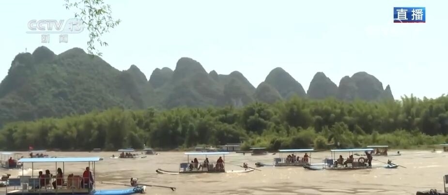 桂林山水甲天下,漓江沿線正是桂林山水最典型的代表?,F(xiàn)在已經(jīng)是廣西的汛期,降雨開始增多。大家通過畫面可以看到,漓江的水不像前幾天那樣清澈,這是因?yàn)榍疤欤鹆謩倓偨?jīng)過一場(chǎng)強(qiáng)降雨,上游來水增加。在漓江之上,無論陰晴雨霧,都是不同的風(fēng)景。像今天這樣的晴天麗日,在漓江上穿行就像在欣賞一幅青綠山水;而在陰雨天,又像是穿行在傳統(tǒng)的水墨畫之中。根據(jù)桂林海事部門預(yù)測(cè),“五一”假期,桂林水上發(fā)送旅客量超過30萬人次,這幾天旅游公司的船票基本上都是提前售完的狀態(tài)。