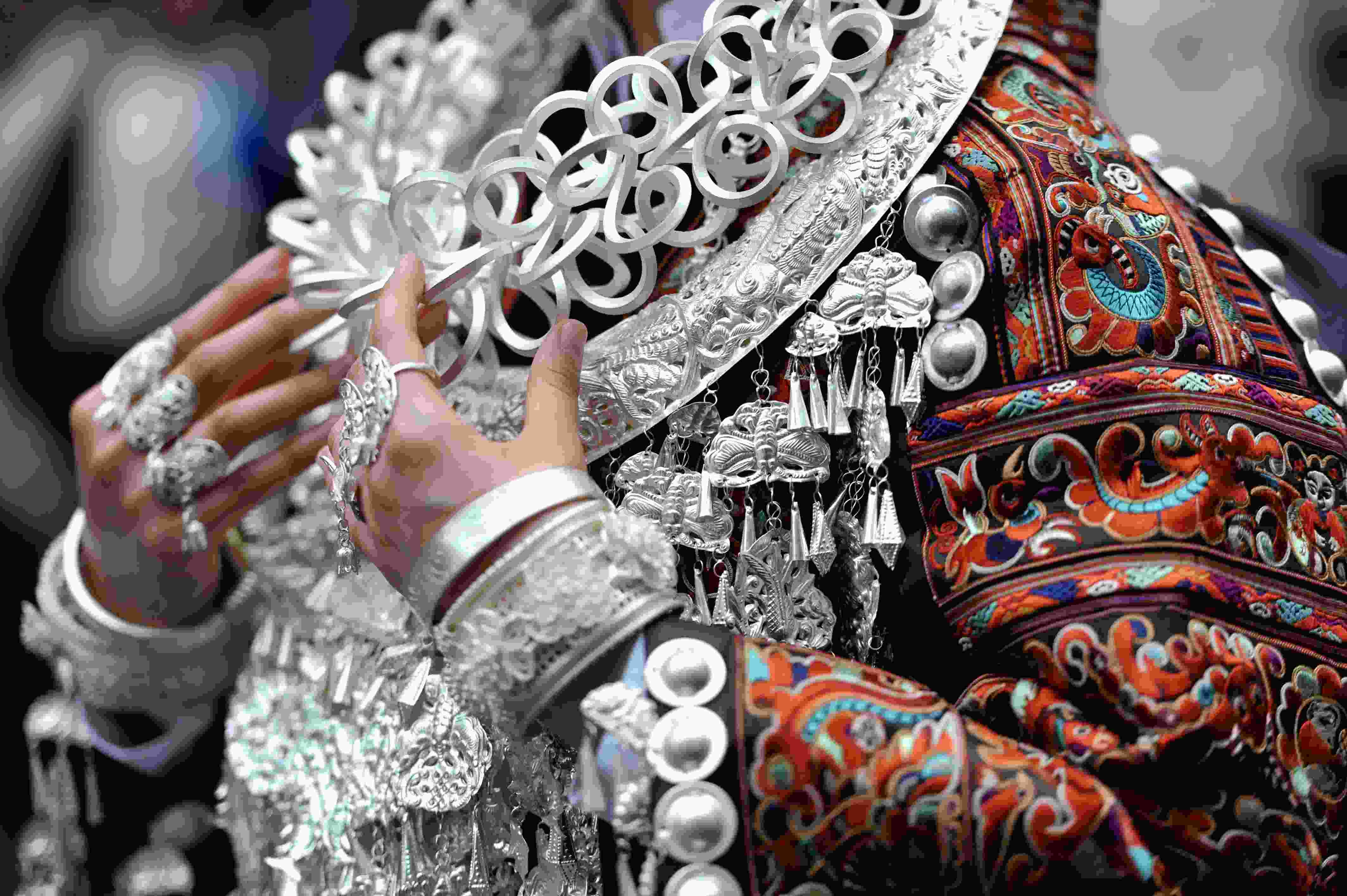 貴州省臺(tái)江縣苗族文化豐富多彩厚重,其服飾是苗族文化的重要載體,苗族女子服飾以靚麗的銀飾、精美的刺繡和獨(dú)特的審美文化內(nèi)涵而被稱為“穿在身上的史書”,成為識(shí)別苗族9大支系的重要標(biāo)識(shí),具有極高的藝術(shù)、觀賞和收藏價(jià)值。 (寧堅(jiān))
