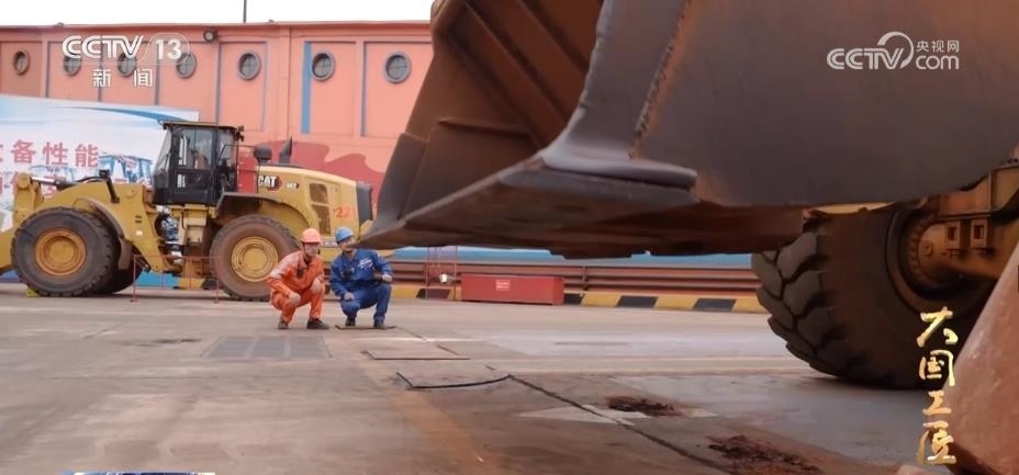 這臺(tái)自重30多噸的大型裝載機(jī),輪胎有一人多高。在清艙作業(yè)時(shí),郭凱的視線被鏟斗擋住了,鏟斗和離艙壁的距離,只能靠手感和經(jīng)驗(yàn)來判斷。而郭凱把裝載機(jī)鏟斗和艙壁的距離精確地控制在了1毫米。如果距離大于1毫米,壁上的礦石就難以刮干凈;小于1毫米,就會(huì)刮到艙壁。剎車、油門、落大臂、起翻斗,郭凱一連貫動(dòng)作行云流水、人車合一。