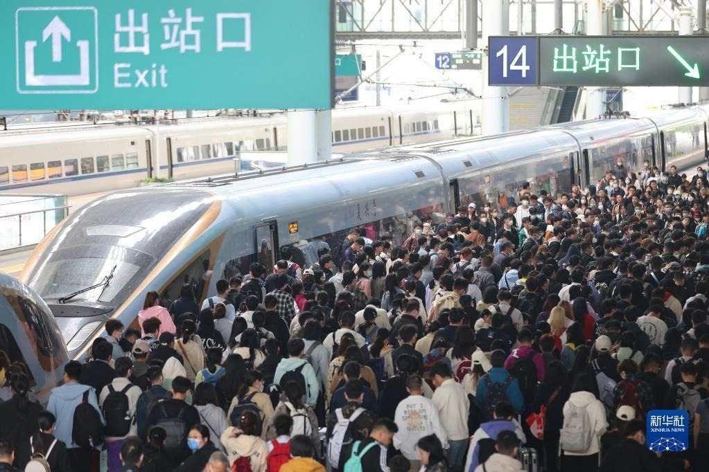 5月3日,旅客在南京火車站乘車出行。