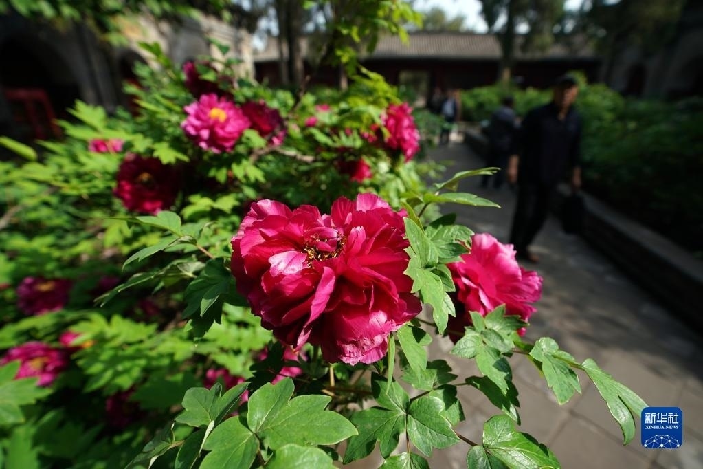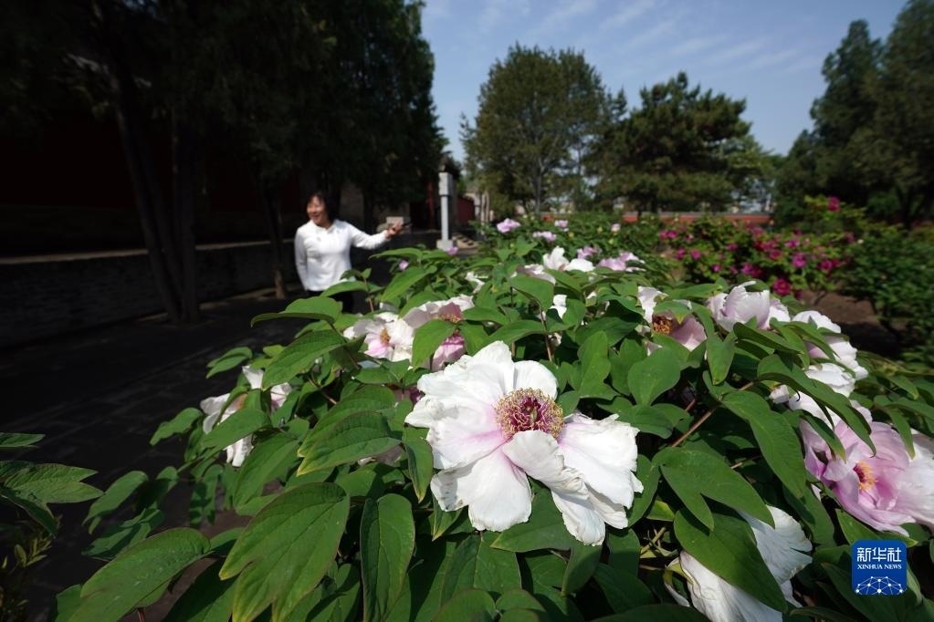 近日,山西太原雙塔寺景區(qū)的數(shù)千株牡丹花競(jìng)相綻放,吸引游人前來觀花賞景。
