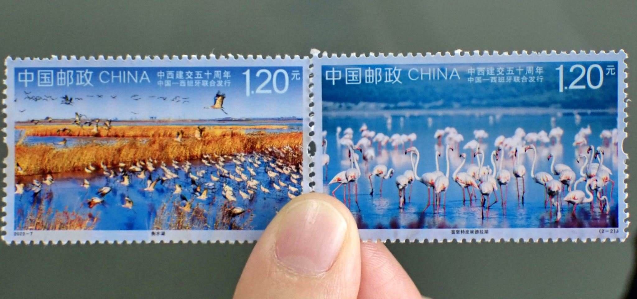 2023年5月10日,中國(guó)郵政發(fā)行《中西建交五十周年》紀(jì)念郵票(與西班牙聯(lián)合發(fā)行),紀(jì)念郵票1套2枚。視覺(jué)中國(guó)