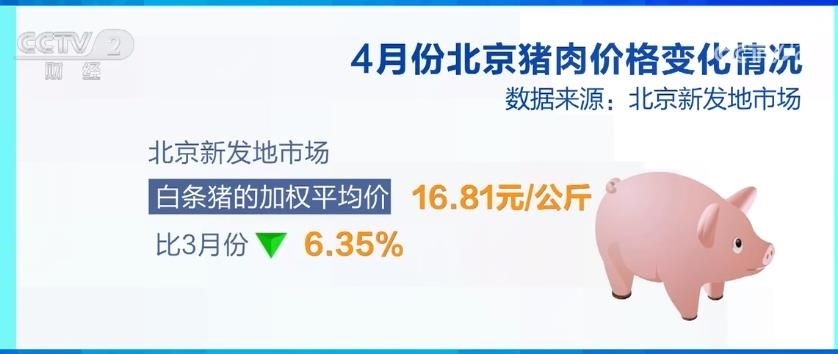 數(shù)據(jù)顯示,4月份北京新發(fā)地市場(chǎng)白條豬的加權(quán)平均價(jià)是每公斤16.81元,比3月份下降6.35%,是今年以來(lái)的最低價(jià)格,也是去年5月份以來(lái)的最低價(jià)格。市場(chǎng)負(fù)責(zé)人介紹說(shuō),盡管4月份的豬肉消費(fèi)比3月份有比較明顯的增長(zhǎng),但是供應(yīng)過(guò)剩的局面仍然存在,需求增長(zhǎng)的幅度不及供應(yīng)能力增長(zhǎng)的幅度,4月份白條豬的日均上市量在近5年同期中處于中等偏上的位置。