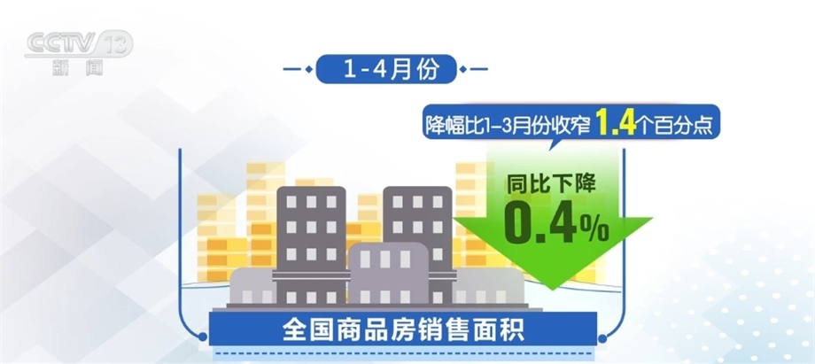 從銷(xiāo)售看,隨著政策效應(yīng)逐步顯現(xiàn),以及前期疫情積累的需求釋放,1—4月份,全國(guó)商品房銷(xiāo)售面積同比下降0.4%,降幅比1—3月份收窄1.4個(gè)百分點(diǎn)。銷(xiāo)售額增長(zhǎng)8.8%,增速比1—3月份加快4.7個(gè)百分點(diǎn)。