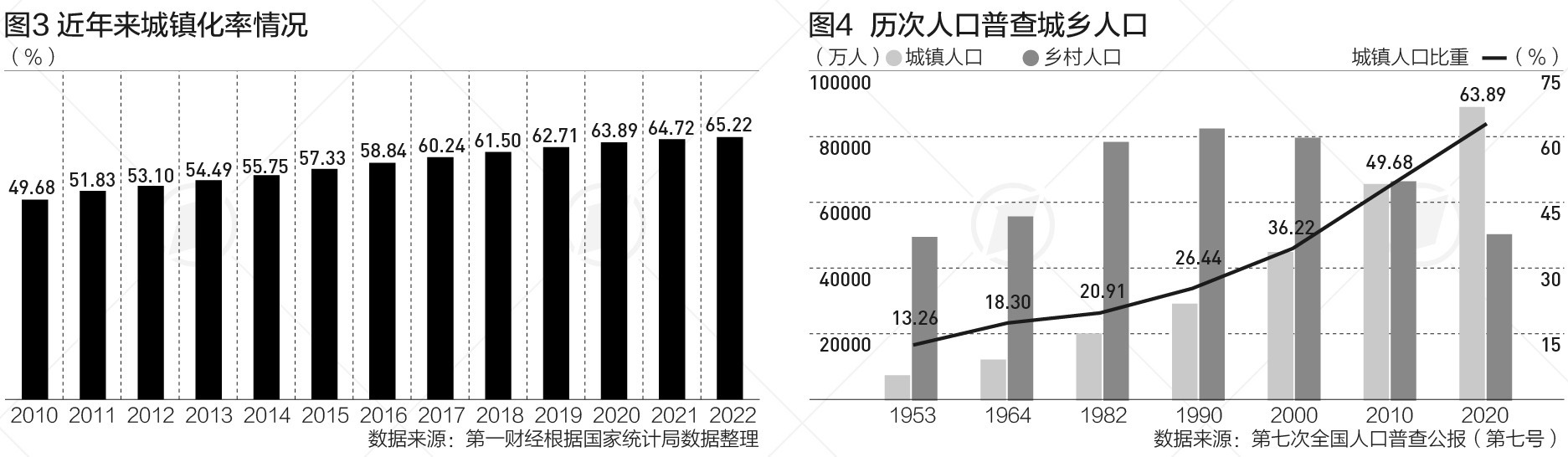 國家統(tǒng)計局?jǐn)?shù)據(jù)顯示,2022年末城鎮(zhèn)常住人口92071萬人,比上年末增加646萬人;鄉(xiāng)村常住人口49104萬人,減少731萬人;城鎮(zhèn)人口占全國人口比重(城鎮(zhèn)化率)為65.22%,比上年末提高0.50個百分點。