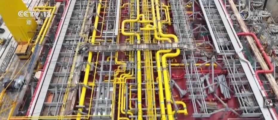 這艘船除了大,技術(shù)也十分先進(jìn)。這上面有一些密密麻麻的管道,是用來(lái)處理加工從海底開(kāi)采出來(lái)的原油,再進(jìn)行提煉、分離。其實(shí),我們可以通俗理解它就是一個(gè)海上可以移動(dòng)的化工廠。