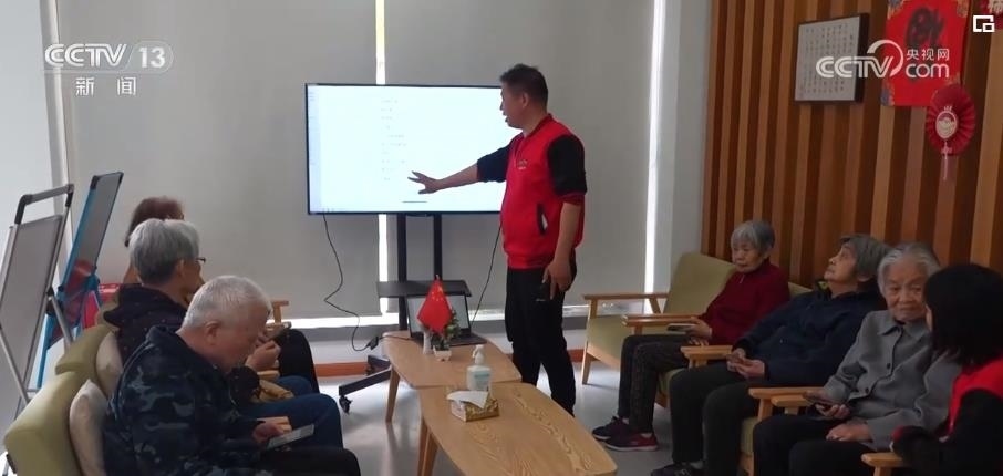 在上海普陀區(qū)長(zhǎng)風(fēng)街道,社區(qū)工作人員正在和外賣平臺(tái)工作人員集體培訓(xùn)老年人用手機(jī)APP的“長(zhǎng)輩模式”來(lái)解決點(diǎn)餐、買菜、買藥等日常生活需要。