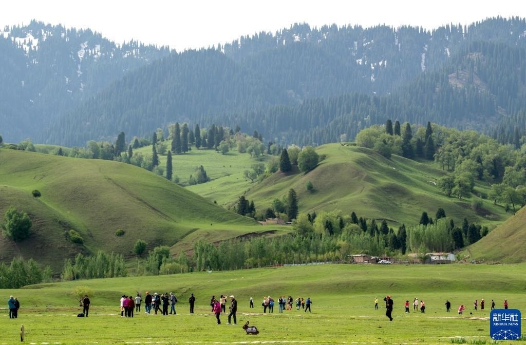 5月19日,游客在位于新疆新源縣的那拉提旅游風(fēng)景區(qū)觀(guān)光。
