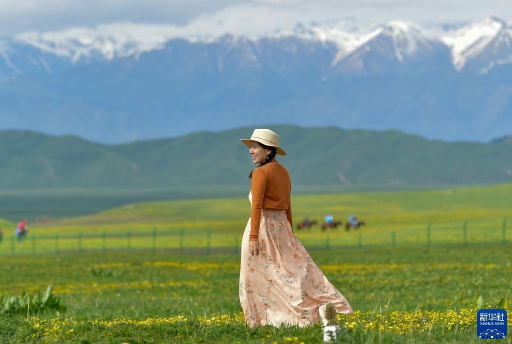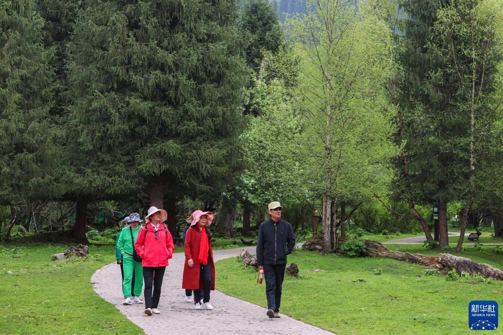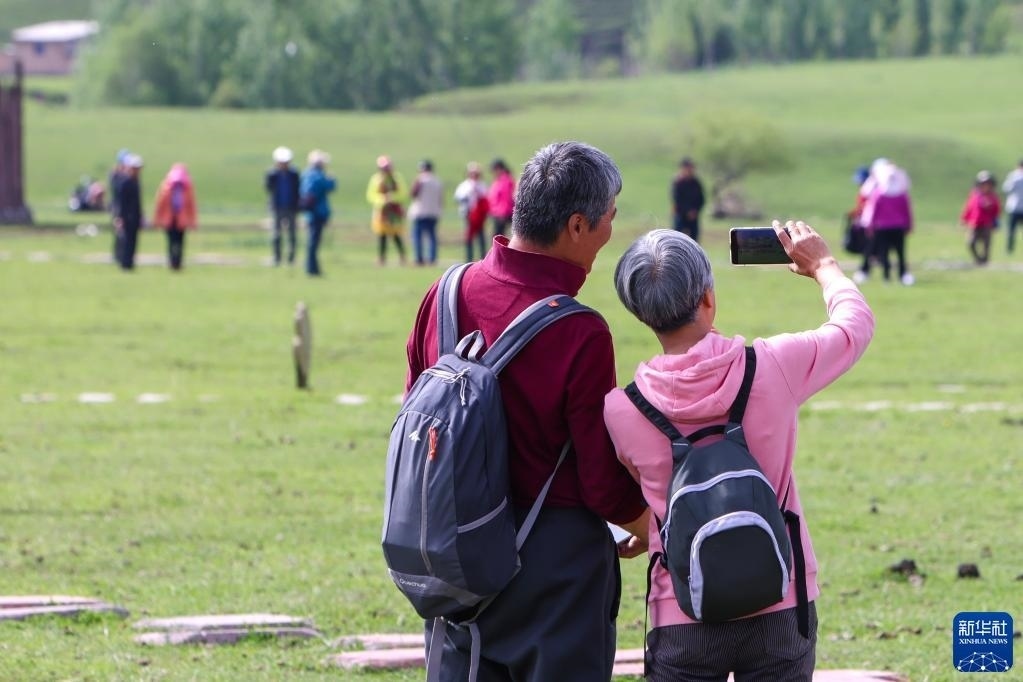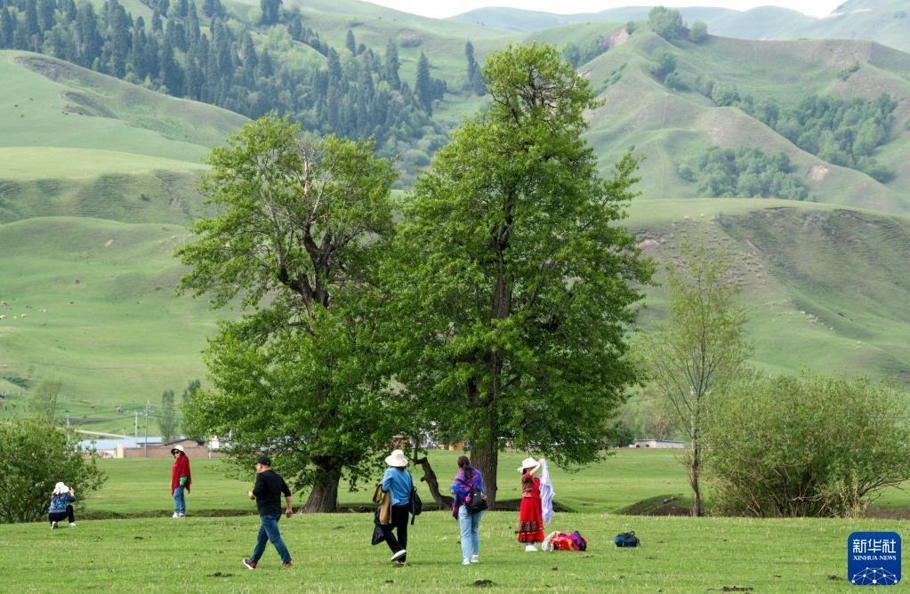 5月19日,游客在位于新疆新源縣的那拉提旅游風(fēng)景區(qū)觀(guān)光。   新華社記者 王菲 攝