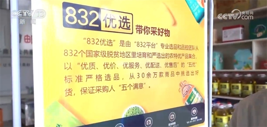 總臺(tái)央視記者 蔣樹林:這里是永順當(dāng)?shù)氐囊粋€(gè)農(nóng)村電商公共服務(wù)中心,很多“土特產(chǎn)”都通過“832平臺(tái)”走出大山,擺上貨架的產(chǎn)品都要嚴(yán)格符合五優(yōu)標(biāo)準(zhǔn),即優(yōu)質(zhì)、優(yōu)價(jià)、優(yōu)服務(wù),特別是優(yōu)配送、優(yōu)售后。