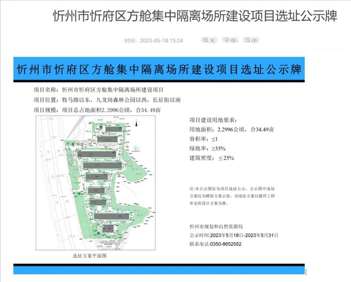 ·山西忻州選址建方艙?官方回應:方艙已建,選址公示為完善手續(xù)。
