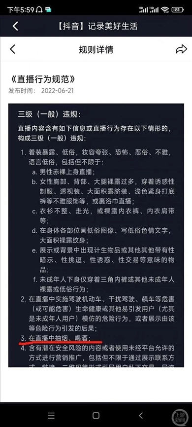 ·網(wǎng)紅“三千哥”直播PK喝酒后去世,平臺規(guī)定直播中喝酒屬于三級違規(guī),有律師表示其行為自擔風險,很難追責。